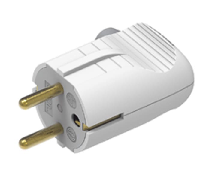 Spina volante 2P+T 10/16A salvaspazio, con standard tedesco/italiano e standard Francia. Uscita del cavo in linea o a squadra - colore bianco