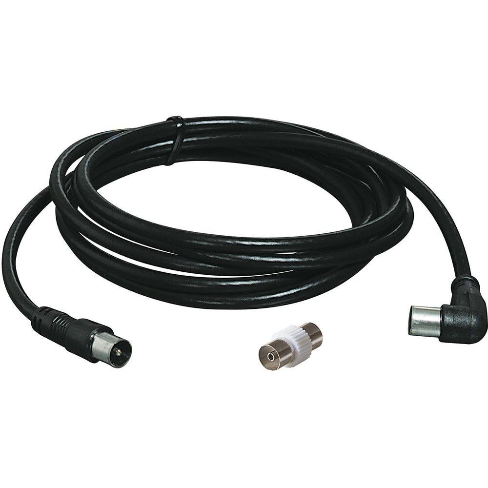 cavo di prolunga TV con 1 spina diritta ed 1 spina a squadra con diametro 9,5 mm - con adattatore a corredo - può essere usato con prese murali femmina o maschio - lunghezza 1,5 m - nero - prodotto in blister 144x240mm. Colore: nero. Formato blister: blister 144x240