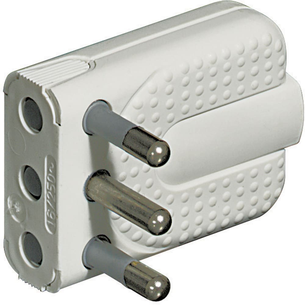 Spina Corner 2P+T 16A salvaspazio con spinotti orientabili di colore bianco