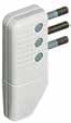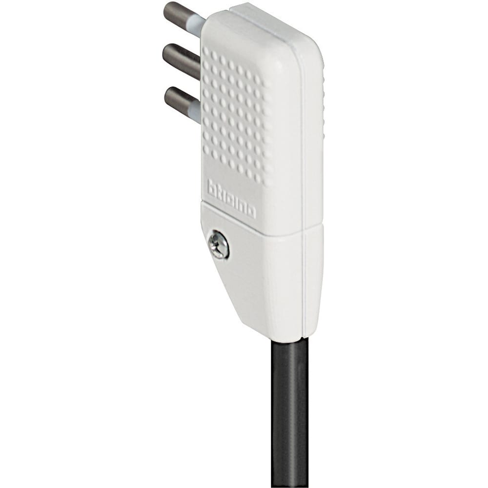 Spina corner a squadra 2P+T 10A salvaspazio con spinotti orientabili in linea o a squadra di colore bianco. Venduta in blister 90x122 mm (LxA)