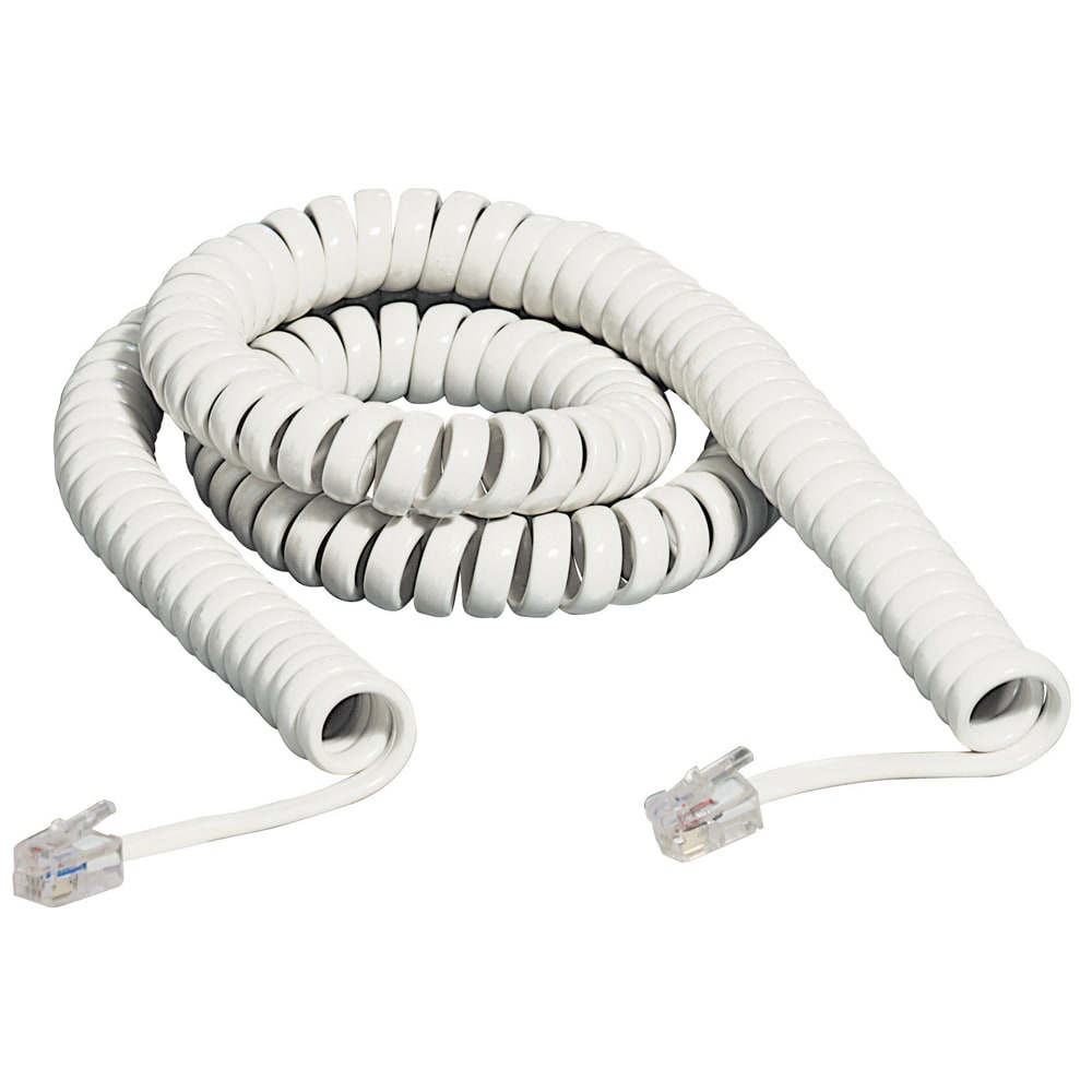 cavo telefonico per connessione della cornetta all\'apparecchio - cavo spiralato a 4 conduttori intestato da entrambe le parti con spina di connettore 4/4 poli - lunghezza a cavo esteso 2,5 m - colore bianco - prodotto in blister 144x180mm. Formato blister: blister 144x180