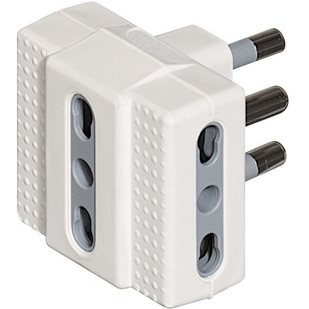 Adattatore TRIS con 3 prese bipasso 10/16A e spina 16A bianco