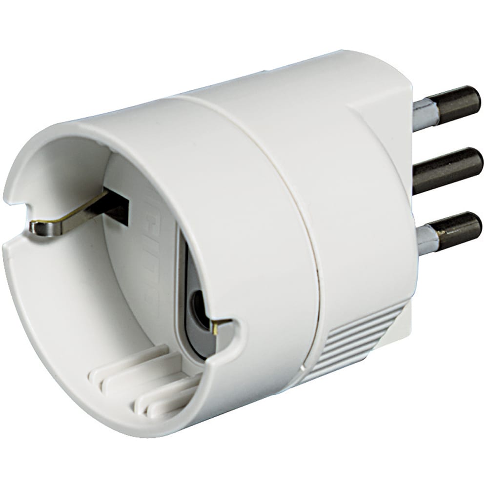 Adattatore con spina 2P+T 10A e presa standard tedesca di colore bianco