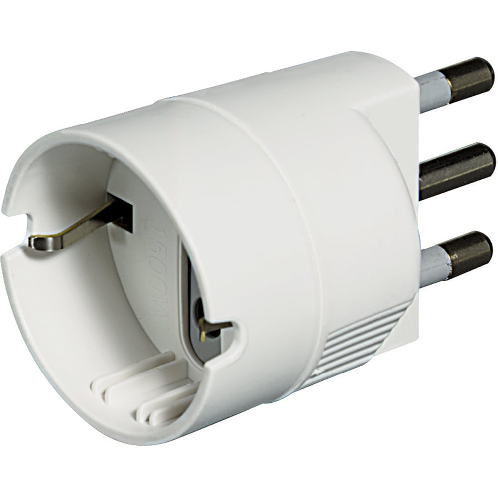 Adattatore con spina 2P+T 16A e presa standard tedesca di colore bianco