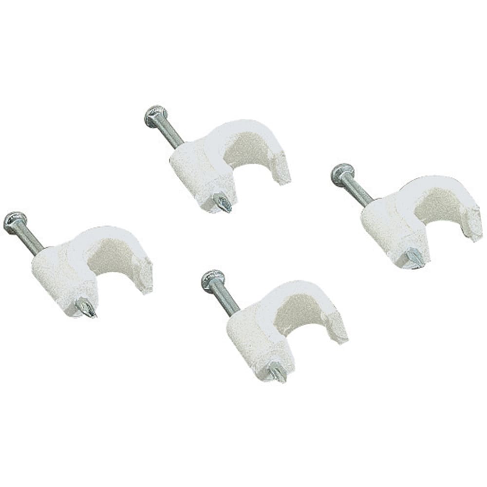 confezione con 30 graffette in plastica con chiodo in acciaio per fissaggio a parete di cavi tondi diametro 7 mm - prodotto in blister 72x122mm. Formato blister: blister 72x122