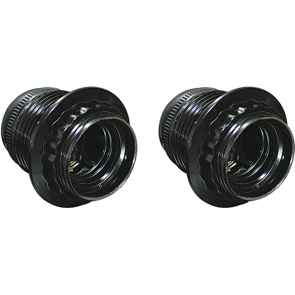 confezione con coppia di portalampada in plastica con attacco E27 - volante con corpo filettato e ghiera di fissaggio - colore nero - prodotto in blister 144x180mm. Colore: nero. Formato blister: blister 144x180