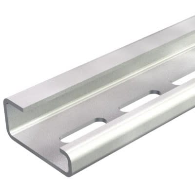 Profilato d'appoggio a norma IEC 60715 tipo “a G32” in acciaio passivato con asole