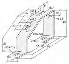 Staffa inclinata zincata. Portabarre rame 6 x 6 mm per il fissaggio di profilati porta morsetti, con possibilità di montaggio di barra collettrice di terra in tutta la lunghezza della morsettiera.