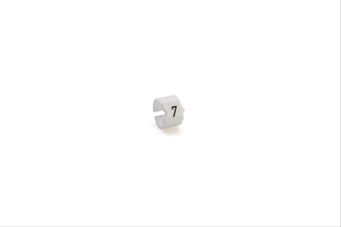 SEGNACAVO SM-15 SNAP SU SUPPORTO, PER CAVI DI DIAMETRO 5,8-8,5mm E SEZIONE 10-16mmq, BIANCO, CON STAMPA NERA NUMERO "7", SACCHETTO
