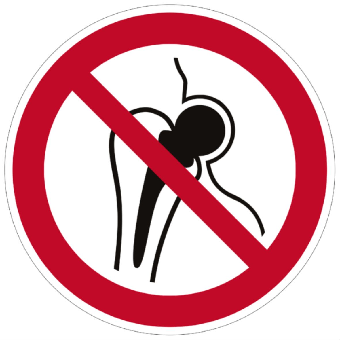 ETICHETTA ADESIVA DI DIVIETO PS-MP, SIMBOLO VIETATO L'ACCESSO AI PORTATORI DI PROTESI METALLICHE, DIMENSIONE 25mm