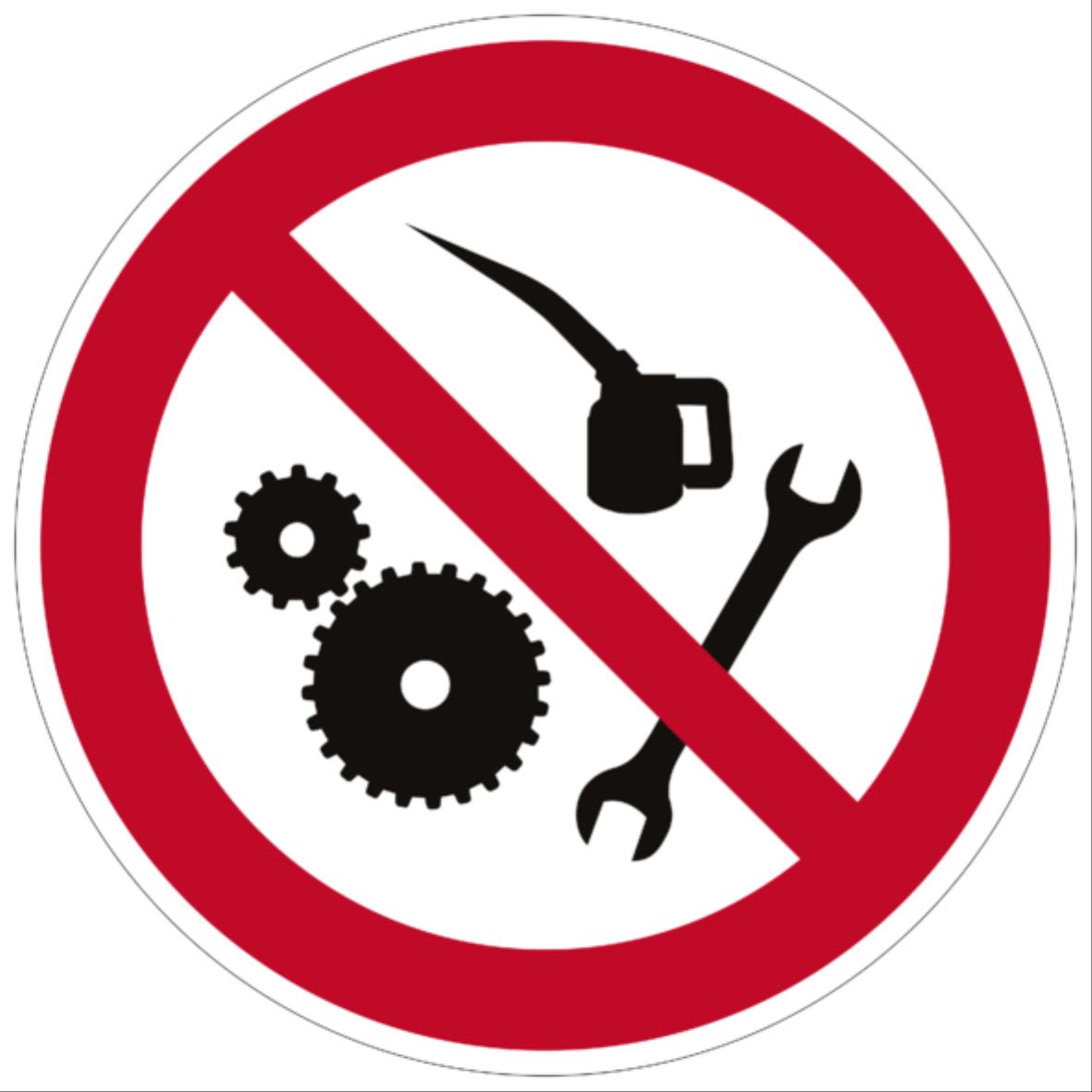 ETICHETTA ADESIVA DI DIVIETO PS-NL, SIMBOLO VIETATO LUBRIFICARE GLI ORGANI IN MOTO, DIMENSIONE 60mm
