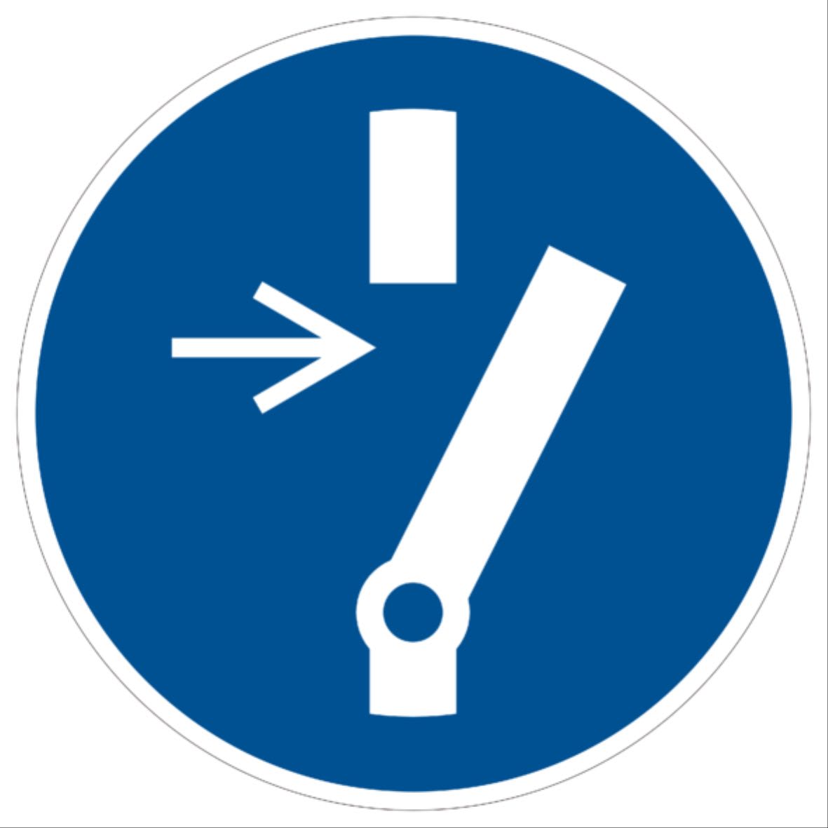ETICHETTA ADESIVA DI PRESCRIZIONE MS-BC, SIMBOLO INTERROMPERE IL CIRCUITO PRIMA DI INIZIARE I LAVORI, DIMENSIONE 50mm