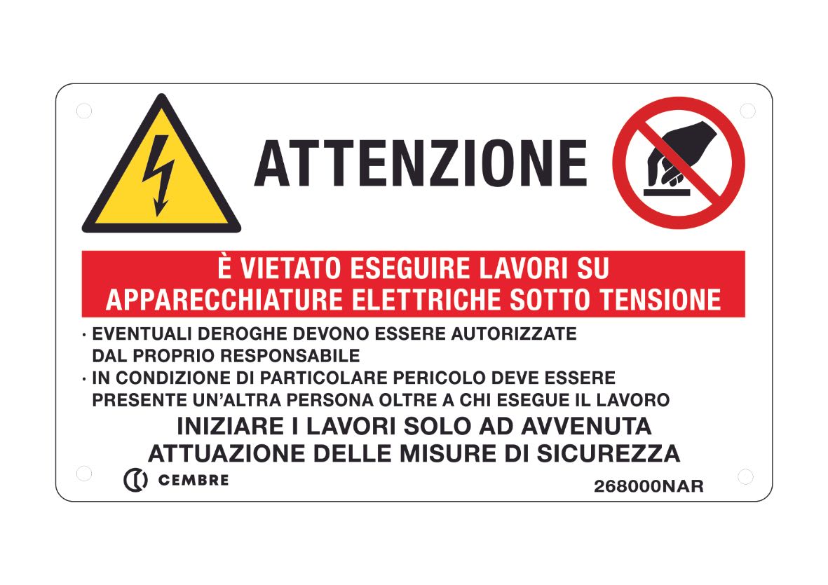 Targa in alluminio, divieto lavori su apparecchiature elettriche sotto tensione
