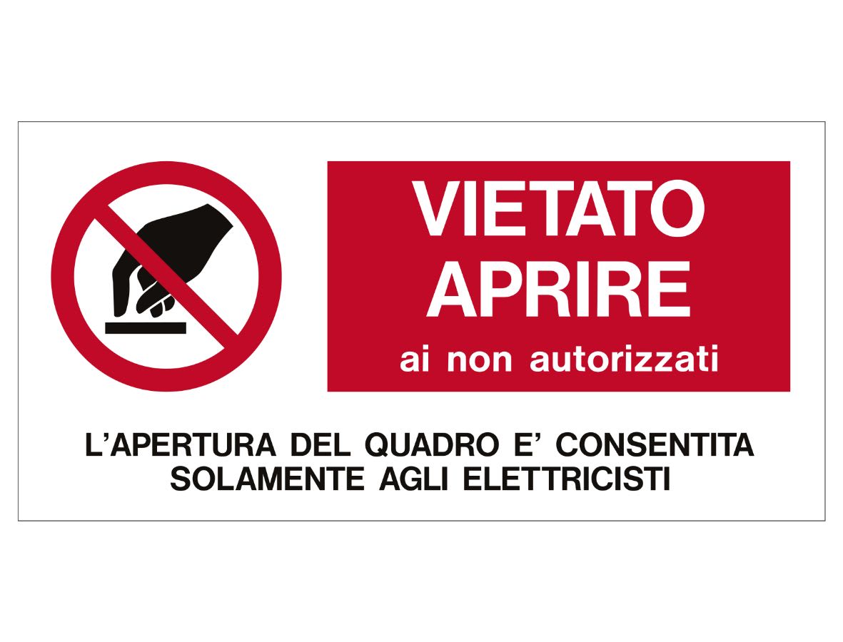 Targa in alluminio per impianti elettrici, vietato aprire