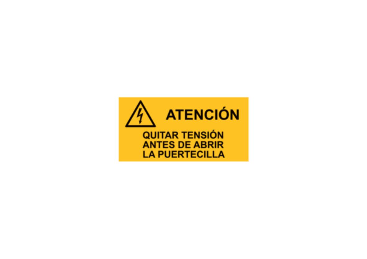 Etichetta adesiva per impianti elettrici, testo "attenzione! togliere tensione prma di aprire lo sportello"