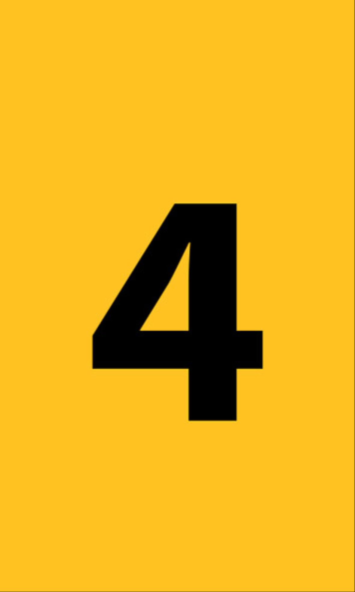 ETICHETTA ALFANUMERICA IN POLIESTERE, 175X99mm, GIALLO, CON STAMPA NERA NUMERO "4"