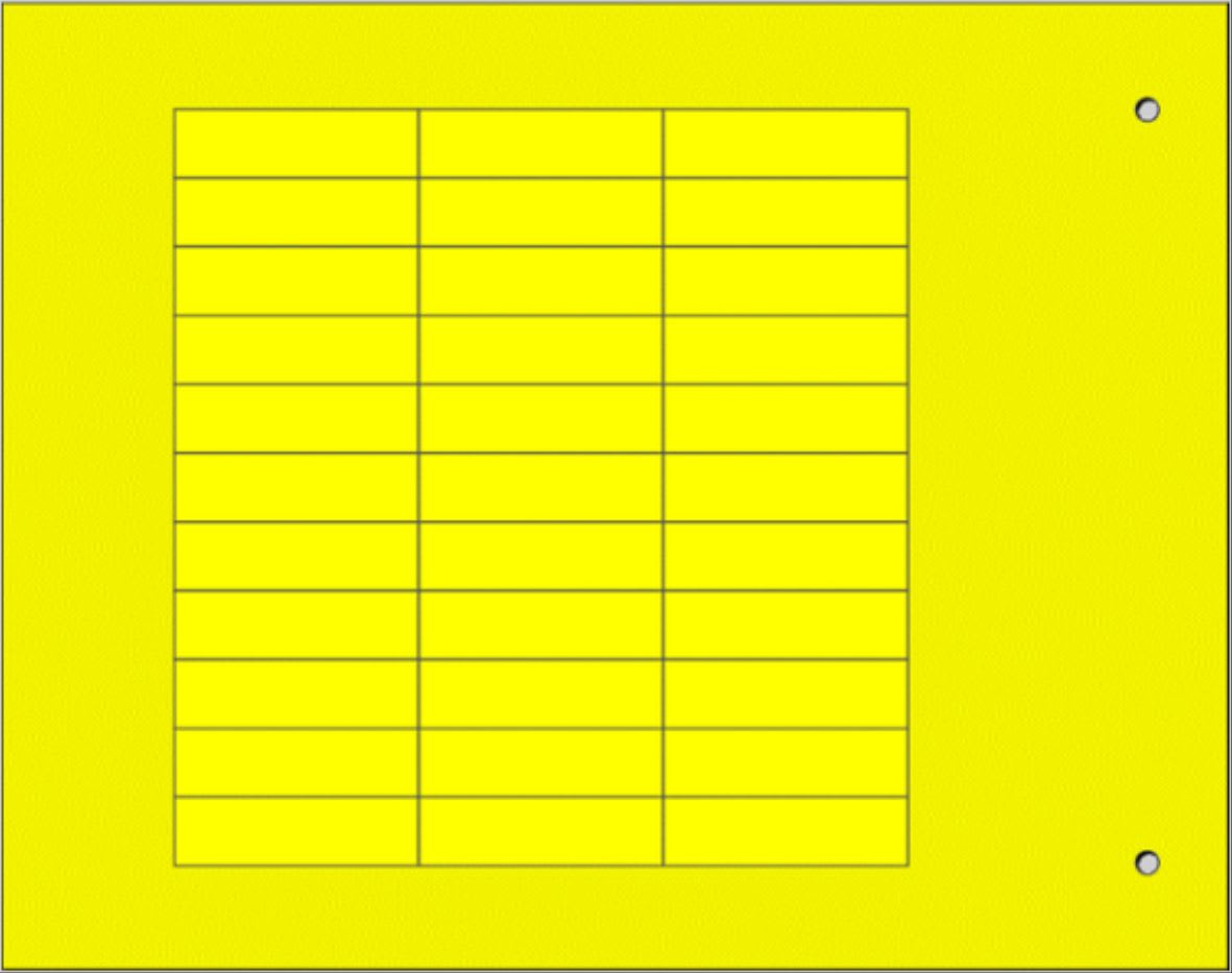 Il loro retro e adesivo e possono essere applicate sull?apparecchiatura. Le targhette per componenti Siemens 3SB3923-0AV, Siemens 3SB3943-0AX, hanno gli angoli raggiati. Alcune dimensioni sono disponibili in versione NON ADESIVA nei modelli MG-TAP e MG-TAPW.
