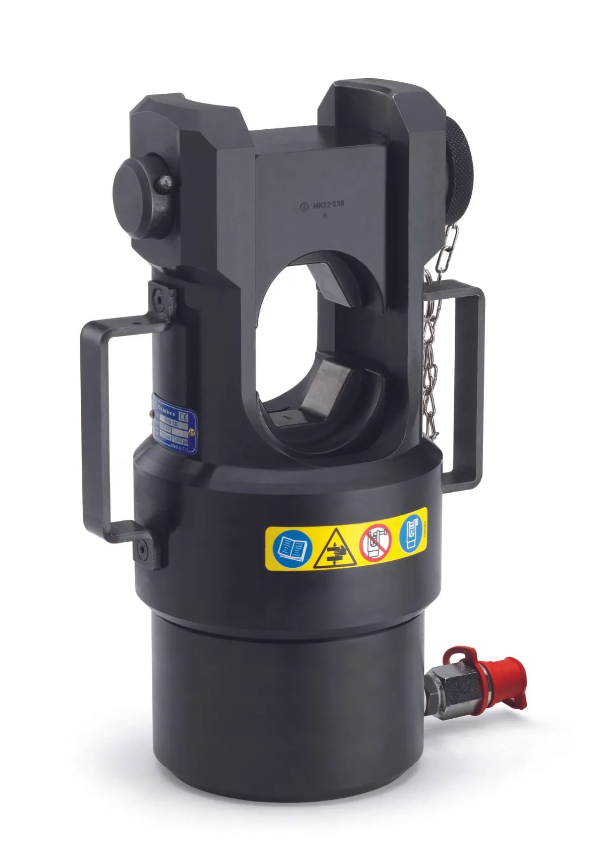 Testa oleodinamica completa di innesto rapido maschio con bloccaggio automatico. Puo impiegare, mediante l?adattatore tipo AU520-130C, la serie di matrici ad innesto semicircolare comune agli utensili sviluppanti una forza di 130 kN.