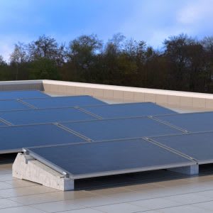 Il sistema con supporto in conglomerato cementizio ZC1052, consente di installare una singola fila di moduli fotovoltaici disposti in orizzontale o verticale con inclinazione 10°. Il montaggio a scatto dei morsetti universali terminale KMTU2950 e centrale KMCU2950 avviene in corrispondenza del lato corto dei moduli. L’utilizzo di accessori quali carter, barre di rinforzo, piastre aumentano la stabilità al carico vento ottimizzando l’incidenza di peso strutturale