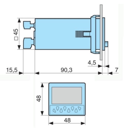 Contatore 48x48 multifunzione con display LCD retroilluminato verde. • Funzioni: contatore, cronometro a preselezione. • Massima frequenza di ingresso: 5 kHz • Facile modifica dei preset • 1 Relè contatto in scambio 3A