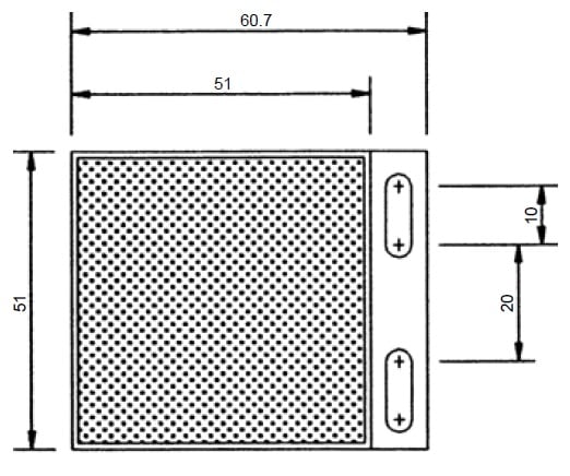 Riflettore a microprismi 38 x 40 mm con supporto 51 x 61 mm.