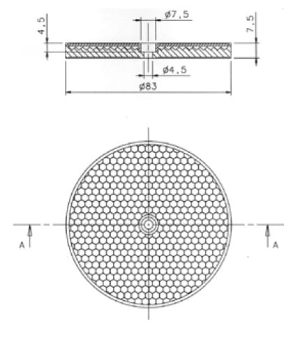 Riflettore prismatico Ø 75 mm con supporto Ø 82 mm.