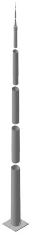 Palo di captazione componibile con fondazione a bicchiere o in calcestruzzo, collaudato secondo la norma DIN EN 62561-(1+2). Per la protezione da fulminazione diretta di impianti particolari, come ad es. impianti di biogas, impianti fotovoltaici a terra,impianti Ex, depositi di munizioni, ecc. Il palo e dimensionato secondo l?Eurocodice 1 (DIN EN 1991-1-4 + DIN EN 1991-1-4/NA) per una velocita delle raffiche di vento non superiore a 159 km/h. I pali vengono messi in opera con la fondazione a bicchiere (elemento prefabbricato) o nella fondazione in calcestruzzo sul posto con gabbia di ancoraggio. Versione con flangia per un montaggio veloce ed elementi conici del palo con sistema di innesto, incl. statica verificabile. Altezza sopra terra 24,88 m.