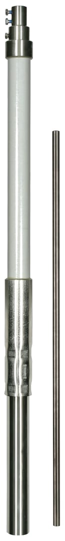 Tubo portante in PRFV/acciaio INOX con terminale interno ed elemento a molla per l'equipotenzialita per la conduttura HVI power, per il montaggio separato (isolato) di captatori con punta di captazione. Per il rispetto della distanza di sicurezza da componenti metallici secondo la norma CEI EN 62305-3 (CEI 81-10/3). Tubo D50 mm in vetroresina (PRFV), stabilizzato ai raggi UV, colore grigio chiaro, coefficiente di materiale km = 0,7. Esecuzione a corpo unico, combinato con punta di captazione (D10 mm, lunghezza 1000 mm) INOX.