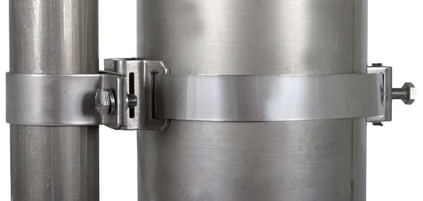 Fascetta di fissaggio, per il montaggio di tubi portanti DEHNiso-Combi p.es. su pali d'antenna oppure altre tubazioni. Esecuzione senza elemento distanziatore.