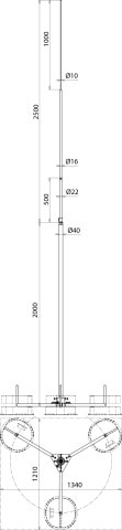 Asta di captazione indipendente, con tripode pieghevole, provata secondo CEI EN 62561-(1+2). Per la protezione di grandi costruzioni sul tetto e la possibilità di adattamento all'inclinazione del tetto fino a max 10°. Le aste di captazione sono dimensionate conformi all'Eurocode per raffiche di vento max. 188 km/h. Esecuzione con altezza di 4500 mm, nella fornitura è compreso il morsetto di collegamento per i conduttori tondi 6-10 mm.