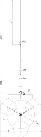 Asta di captazione indipendente, con tripode, provata secondo CEI EN 62561-(1+2). Per la protezione di costruzioni sul tetto, con la possibilità di adattamento all'inclinazione del tetto fino a max. 10°. Le aste di captazione sono dimensionate conformi all'Eurocode per raffiche di vento max. 143 km/h. Esecuzione con altezza 3500 mm, compreso morsetto di collegamento per conduttori tondi 8-10 mm.