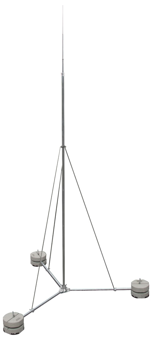 Asta di captazione indipendente, con treppiede pieghevole, provata secondo CEI EN 62561-(1+2). Per la protezione di grandi costruzioni sul tetto e la possibilità di adattamento all'inclinazione del tetto fino a max 10°. Le aste di captazione sono dimensionate conformi all'Eurocode per raffiche di vento max. 168 km/h. Esecuzione con altezza di 7000 mm, nella fornitura è compreso il morsetto di collegamento per i conduttori tondi 6-10 mm.