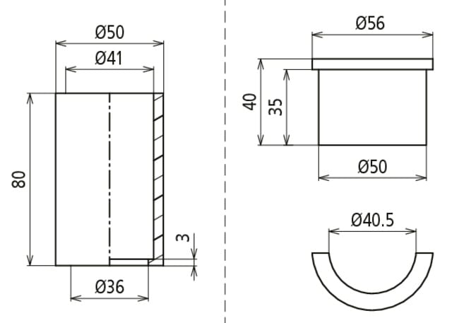 Set adattatore come inserto per tripodi e quadripodi per la riduzione del diametro da 50 mm a 40 mm.