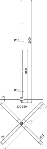 Asta di captazione per tetti metallici, altezza 2000 mm, per la protezione di costruzioni su tetti, abbaini, ecc. Il fissaggio viene realizzato alle estremità dei piedistalli (fori Ø 11 mm), utilizzando 4 staffe portafilo. Si devono scegliere le aste portafilo in base al profilo del tetto, p.es. per tetti con scanalatura verticale arrotondata.