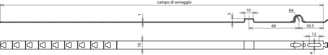 Staffa portafilo per la posa di calate su pluviali. Esecuzione tipo PS senza vite, con stampigliature per pinza, posa del conduttore fissa.