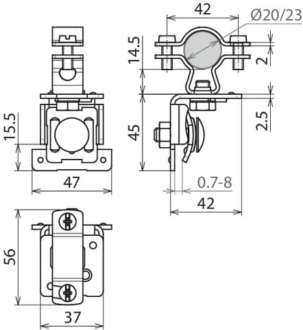 Staffa portafilo per tetti con cavallotto a due viti in INOX per la posa della conduttura HVI su tetti metallici con scanalatura verticale.