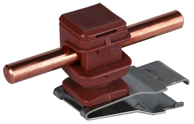 Staffa portafilo per tetti da mettere sui ganci dei colmi nei tetti in tegola, con staffa portafilo DEHNsnap, posa libera del conduttore. Esecuzione in materiale plastico resistente alle intemperie, stabilizzato ai raggi UV e senza alogeni.