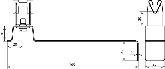 Staffa portafilo per tetti con montante angolato per il fissaggio di captatori e calate per tetti piani. Esecuzione per l'agganciamento alle tegole / pietre con staffa portafilo DEHNgrip altezza 20 mm, posa libera del conduttore, in materiale plastico resistente alle intemperie, stabilizzato ai raggi UV e privo di alogeni.