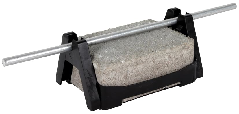 Staffa portafilo per tetti con fissaggio doppio del conduttore tipo FB2, per il fissaggio di conduttori tondi con posa libera del conduttore su tetti piani. Esecuzione componibile di staffa portafilo con base di supporto in materiale plastico resistente alle intemperie, stabilizzato ai raggi UV e privo di alogeni, con zoccolo montato a scatto, in cemento resistente al gelo. Zoccolo e base riciclabili separatamente.