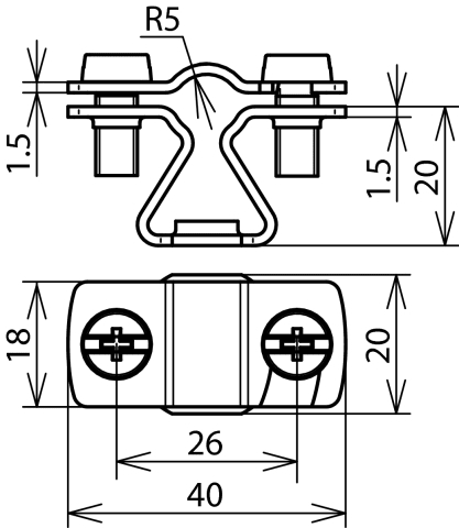 Staffa portafilo DEHNhold con cavallotto a fessura per il fissaggio di conduttori tondi con rivestimento in materiale plastico. Utilizzabile per diversi materiali ad es. Al, INOX, Fe/tZn e Cu, posa fisa del conduttore. Esecuzione con filetto interno.