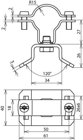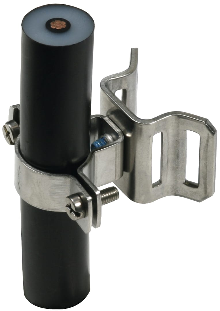 staffa portafilo in acciaio INOX per conduttura HVI power, per il fissaggio su tubi o pali d'antenna ad es. con nastro tenditore (Art. 106 323).