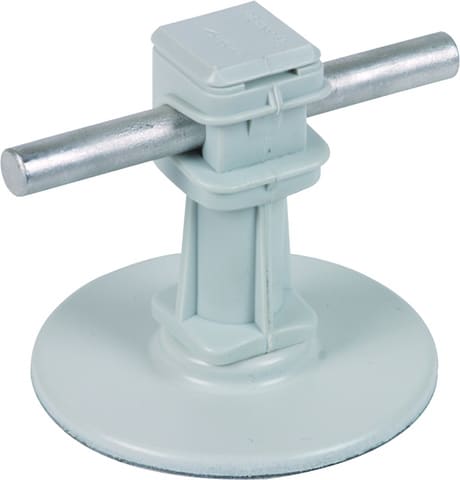 Staffa portafilo per il fissaggio di impianti di captazione aggiuntivi come captatori su tetti metallici. Esecuzione con base adesiva ad es. per tetti trapezoidali, con staffa portafilo DEHNsnap, posa libera del conduttore, in materiale plastico resistente alle intemperie, stabilizzato ai raggi UV e privo di alogeni. La staffa portafilo può essere impiegata su superfici piane (senza struttura) come tetti metallici/superfici metalliche. Le staffe portafilo vengono fissate sul tetto in maniera adesiva (togliere la pellicola protettiva).