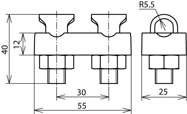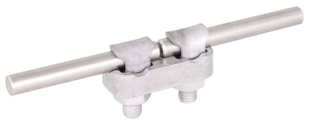 Connettore KS secondo CEI EN 62561-1, per la connessione a portata di corrente di fulmine di conduttori tondi. Esecuzione componibile come connettore distanza 30 mm, con vite e dado M10.