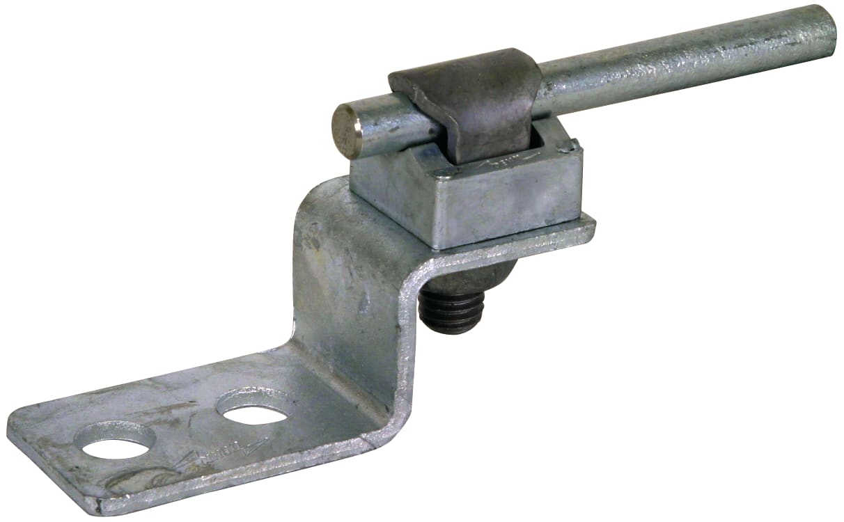 Elemento terminale da avvitare sui punti fissi di terra, per il collegamento ad es. di una barra equipotenziale o per collegare parti della costruzione (ad es. travi d'acciaio o simili) tramite avvitamento. Esecuzione con connettori KS per il collegamento di conduttori tondi.