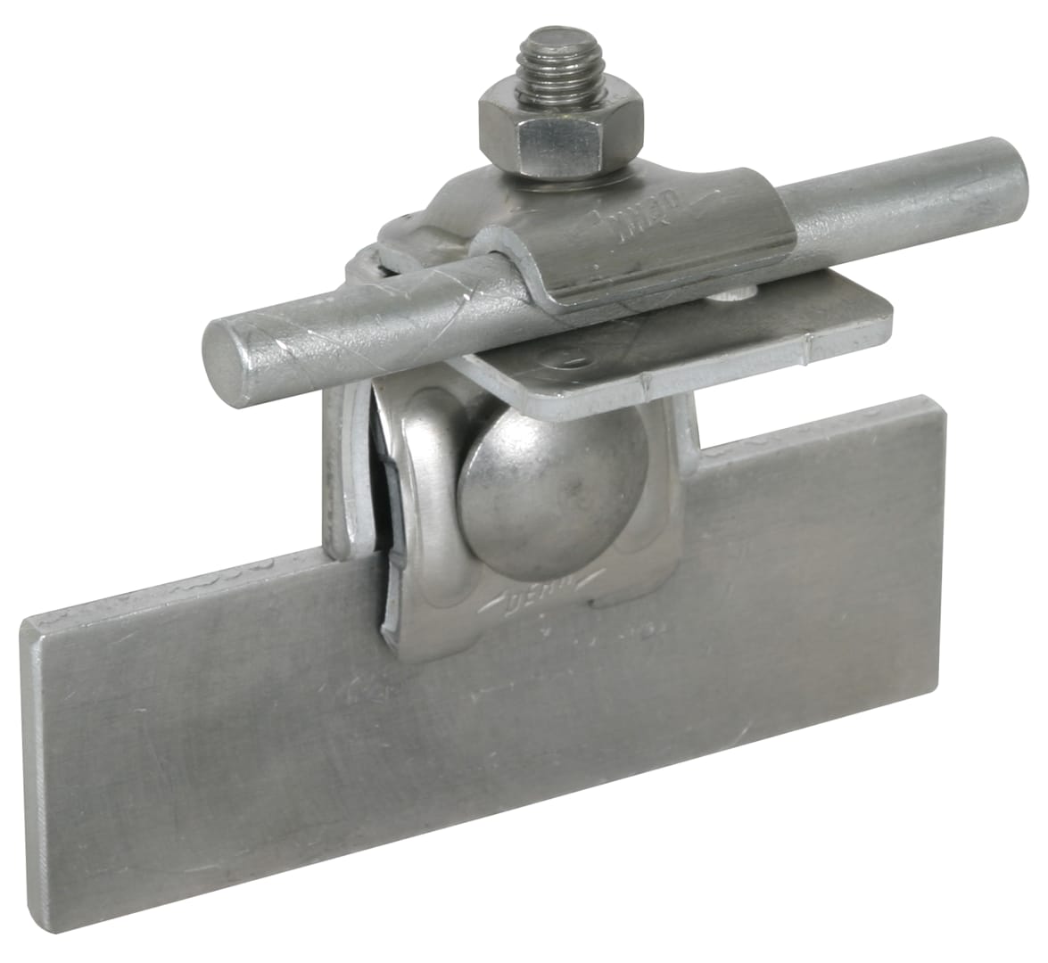 Morsetto scanalato con superficie di contatto maggiorata secondo CEI EN 62561-1, per collegare i conduttori tondi con le scanalature. Esecuzione angolata, connessione longitudinale o trasversale.