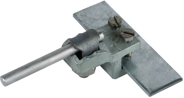 Morsetto secondo CEI EN 62561-1 per la connessione su costruzioni in acciaio e lamiere in acciaio. Esecuzione per connessione con vite KS longitudinale o trasversale.