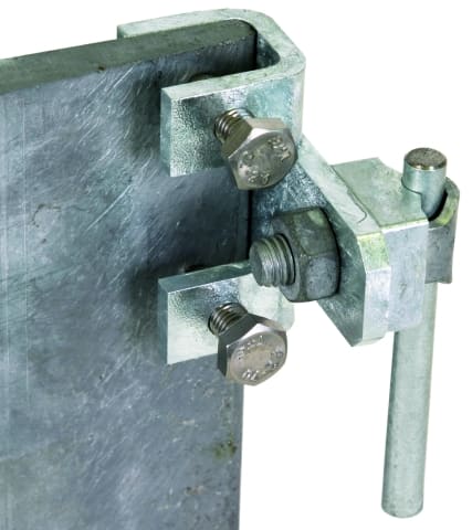 Morsetto di collegamento per travi d'acciaio secondo CEI EN 62561-1 per il collegamento su costruzioni d'acciaio. Esecuzione orizzontale con connettore KS, connessione longitudinale o trasversale.