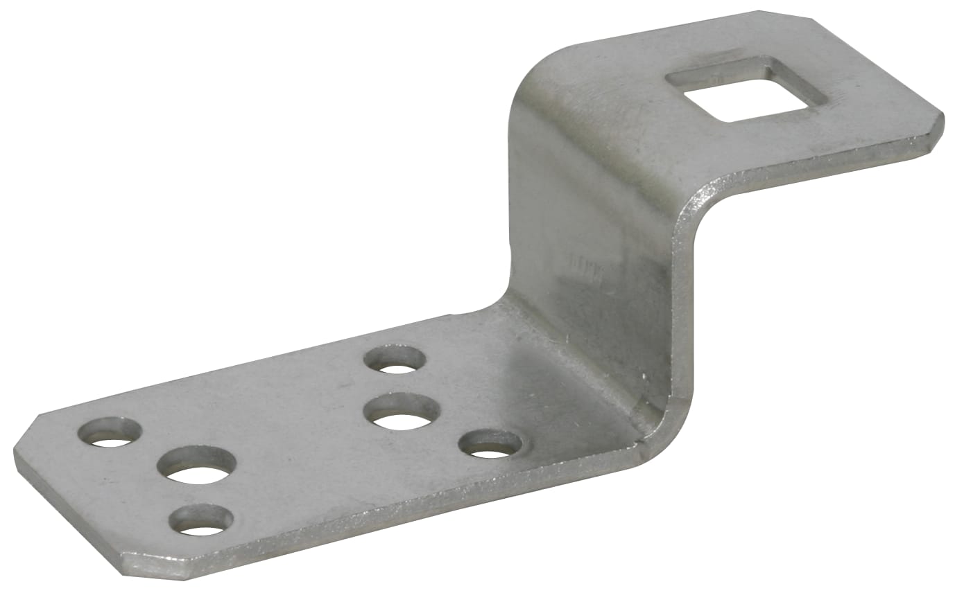 Ganascia in accordo a CEI EN 62561-1 per il collegamento di rivestimenti metallici mediante rivetti oppure viti. Esecuzione con foro quadrato.
