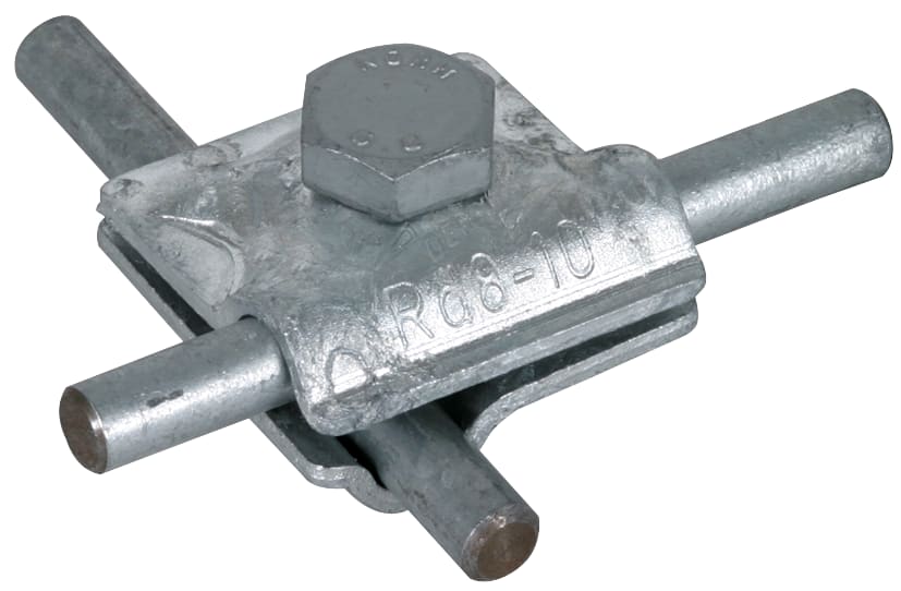 Morsetto di collegamento multiuso secondo CEI EN 62561-1, per l'applicazione universale per connessioni a croce, a "T" e parallele di conduttori tondi. Esecuzione componibile con vite a testa esagonale e filetto nella parte inferiore.