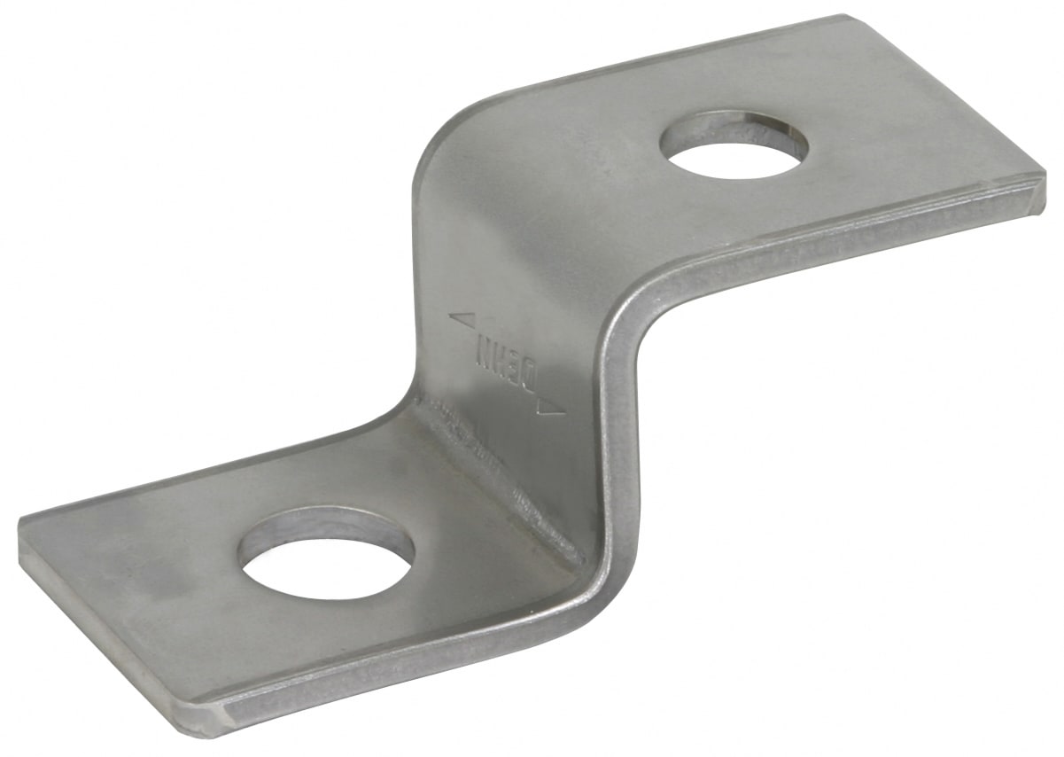 Elemento terminale da avvitare al punto fisso di terra per il collegamento p.es. di una barra equipotenziale oppure per il collegamento di elementi costruttivi (p.es. travi in acciaio o simili) mediante viti. Esecuzione con fori, per la connessione di conduttori tondi p. es. connettori KS.